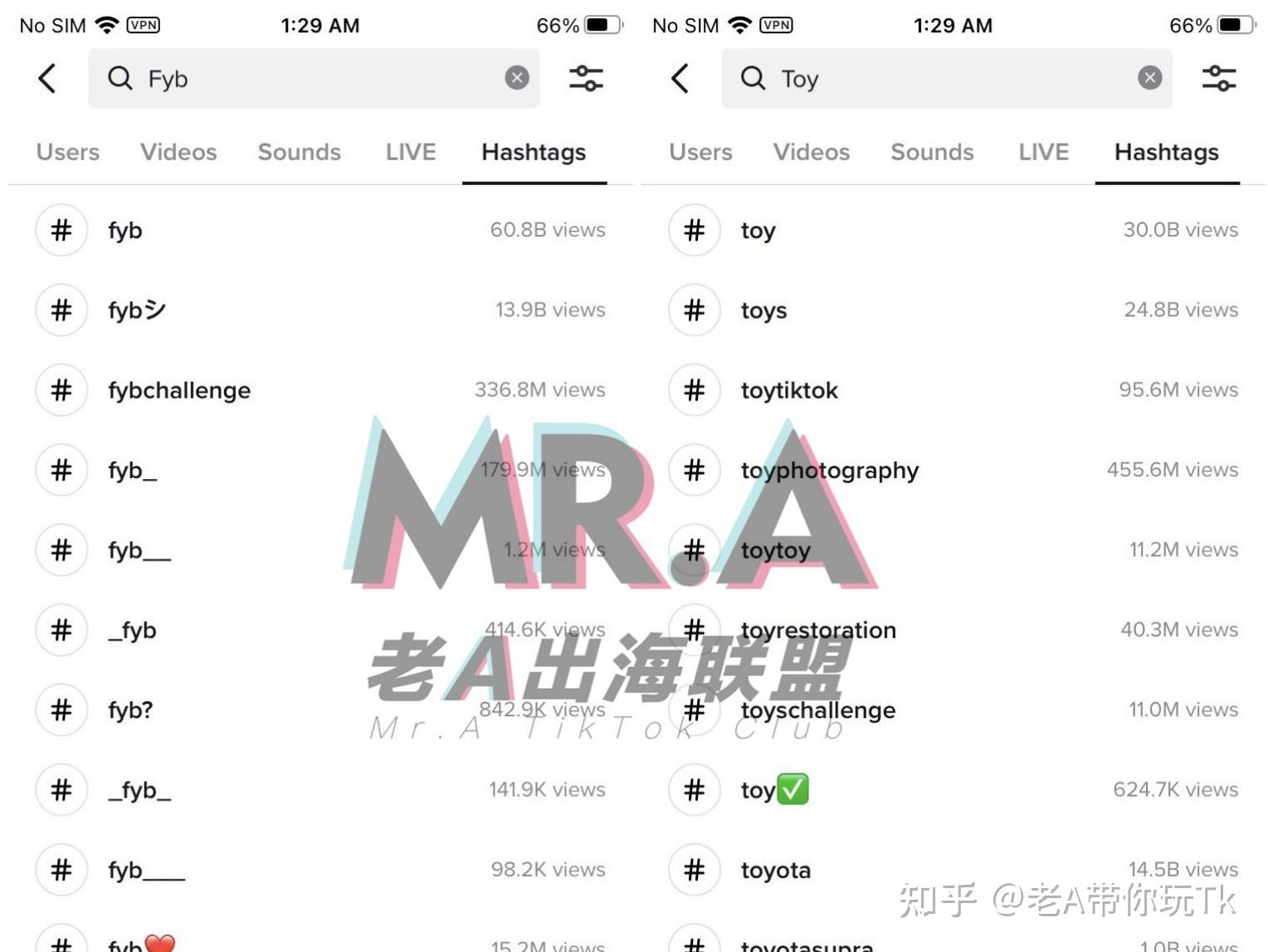 比如你在TK上搜素#toy,系统会自动弹出其他与相关的标签,我们能根据这些标签的播映量进行筛选,找出合适的标签