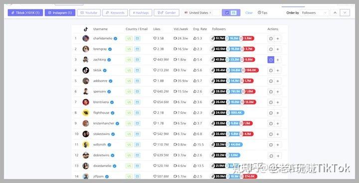 当然官方提供的工具只能查看自己的数据分析,若是你想要查看更多的达人数据most famous tiktoker,你需要借助一些TikTok analytics tool,类似于GugeeData。